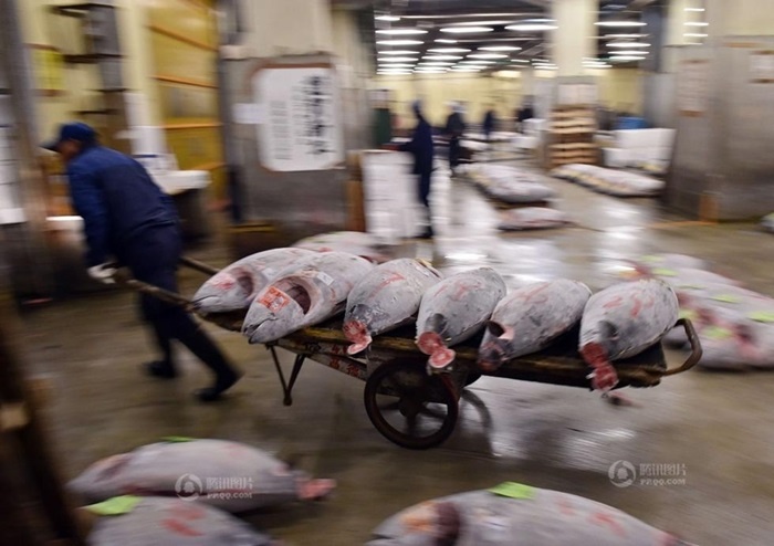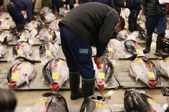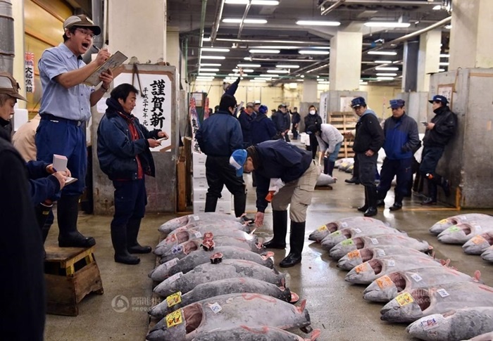 Đấu giá cá ngừ đầu năm là hoạt động thường niên của chợ cá này. Đây là chợ cá có từ thế kỷ 16, hoạt động tấp nập ở Tokyo. |