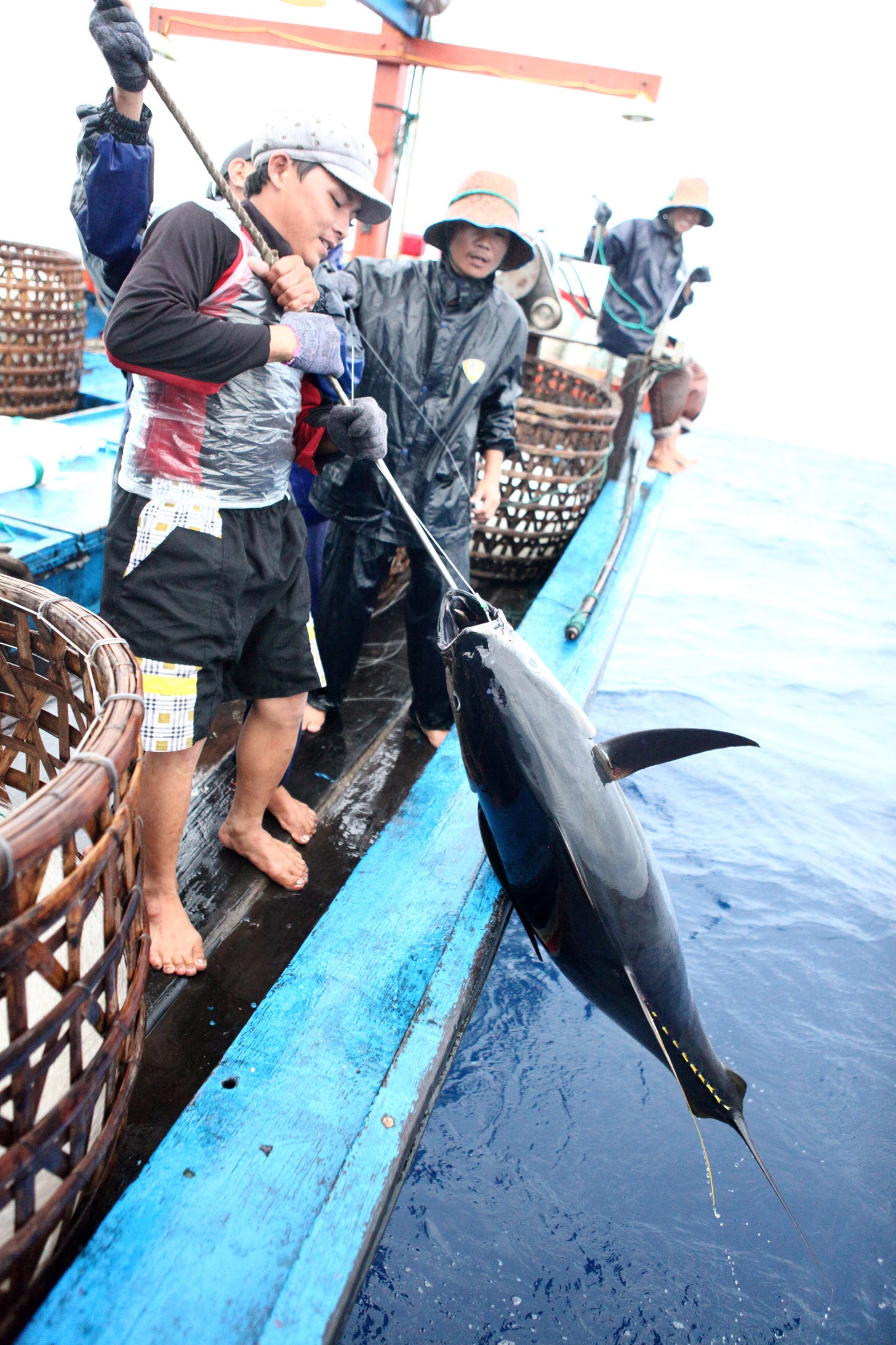 | Phú Yên là một trong những nơi có sản lượng đánh bắt cá ngừ đại dương lớn nhất cả nước. Mỗi chuyến câu cá ngừ của ngư dân kéo dài cả tháng. |