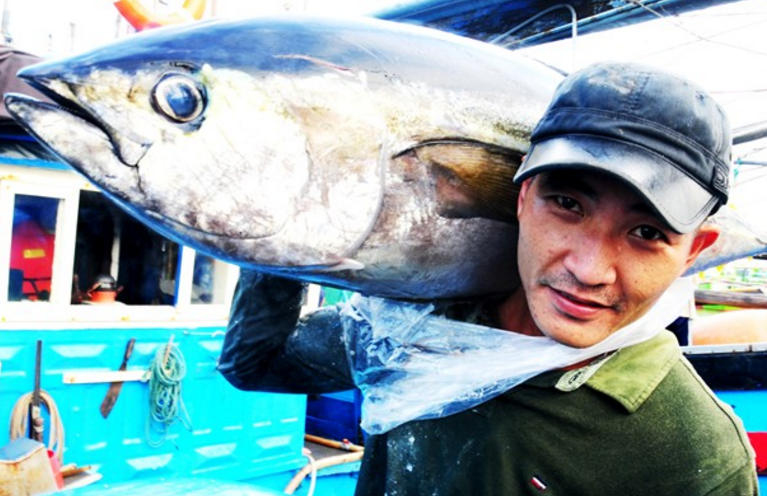 Cá ngừ đại dương tươi sống, một trong những đặc sản địa phương được hệ thống siêu thị một số tỉnh miền Trung thu mua của ngư dân tiêu thụ dịp Tết Bính Thân. Ảnh: Minh Hoàng. |
