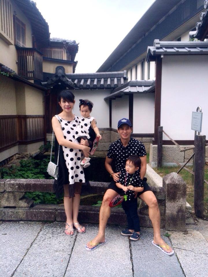 | Tại Nhật, cả gia đình diện trang phục chấm bi trẻ trung. Gu thời trang của gia đình ca sĩ Lý Hải được người xem ngưỡng mộ bởi hình ảnh ton-sur-ton cùng sắc độ và kiểu dáng. Bà xã Minh Hà là người quyết định phong cách thời trang của chồng và các con. |