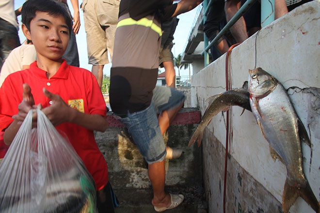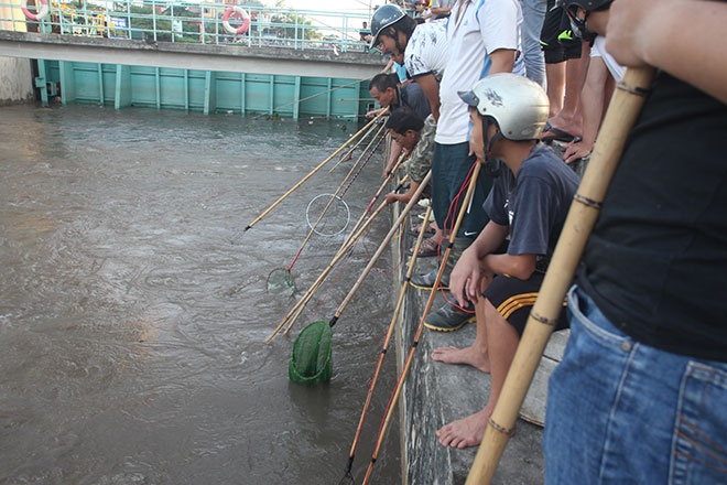 Cá trôi về khu vực này nhiều tới mức có người chỉ cần chờ vợt là được. |