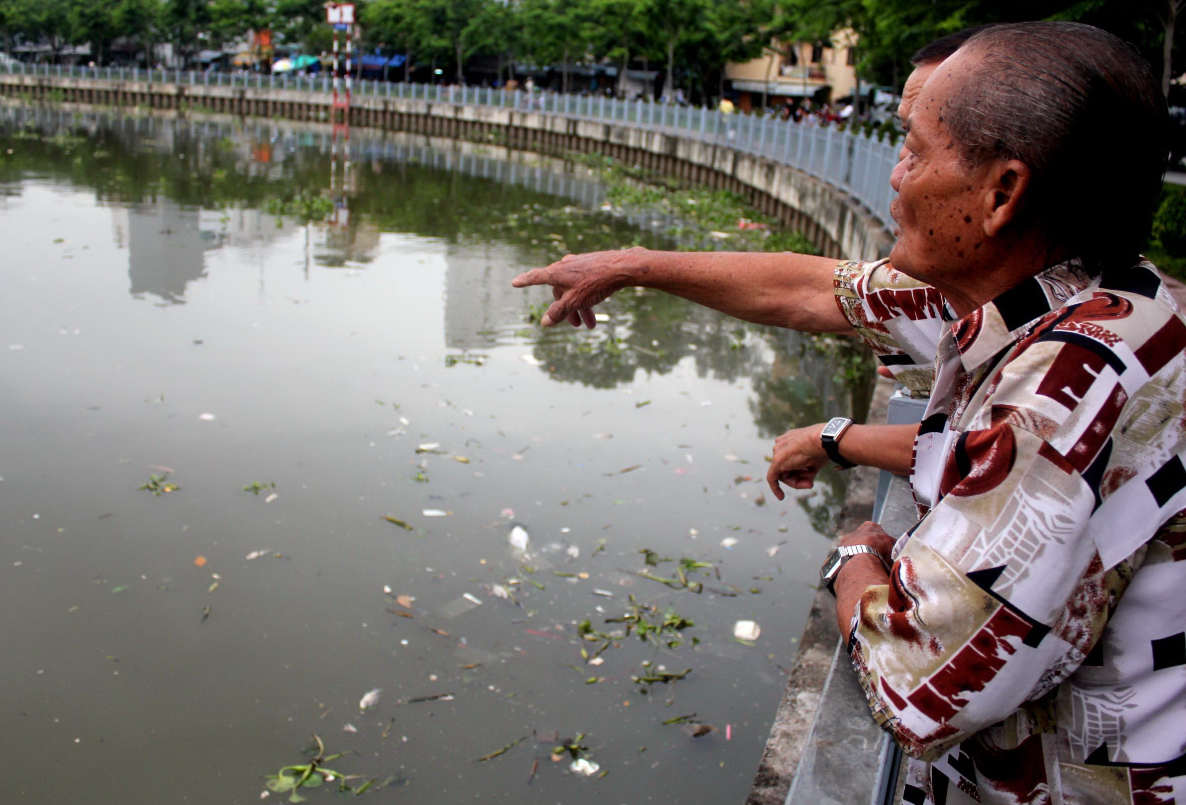| Ngày 30/6, nhiều người đi dạo bên kênh Nhiêu Lộc-Thị Nghè, TP.HCM chứng kiến cảnh các loại cá chết nổi trắng, phình bụng, nhiều con bắt đầu phân hủy suốt dọc dòng kênh. Mùi hôi tanh khó chịu bốc lên nồng nặc khiến nhiều người không dám đi dạo. |
