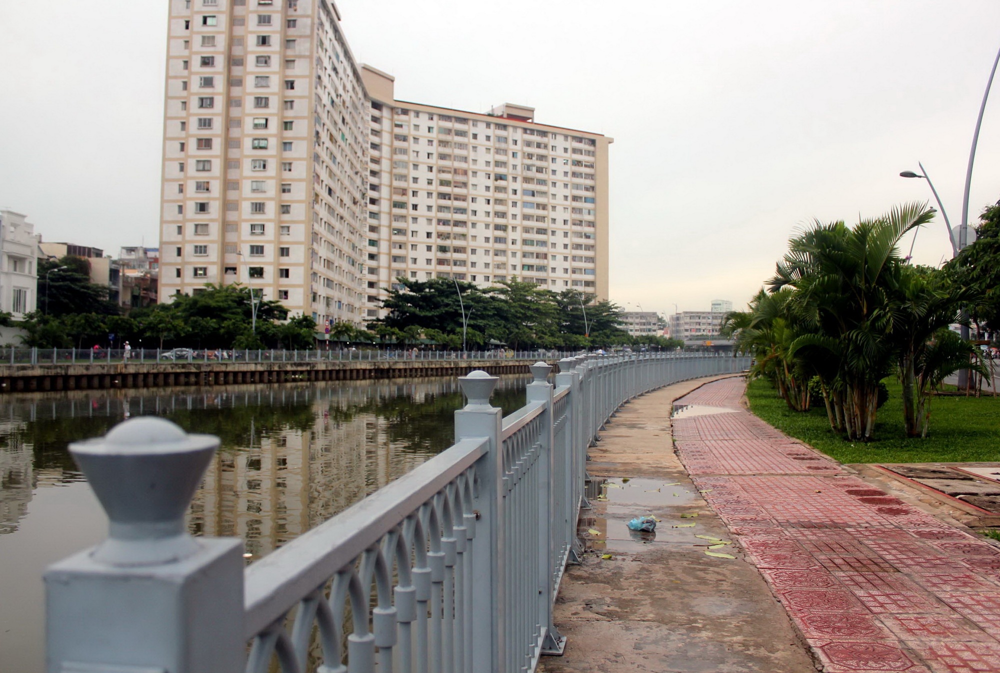 | Vào chiều tối, một số đoạn hai bên bờ kênh vắng bóng người dân đi dạo, tập thể dục, ngắm cảnh như thường ngày bởi mùi hôi tanh của cá chết. |