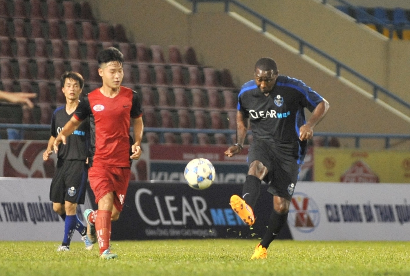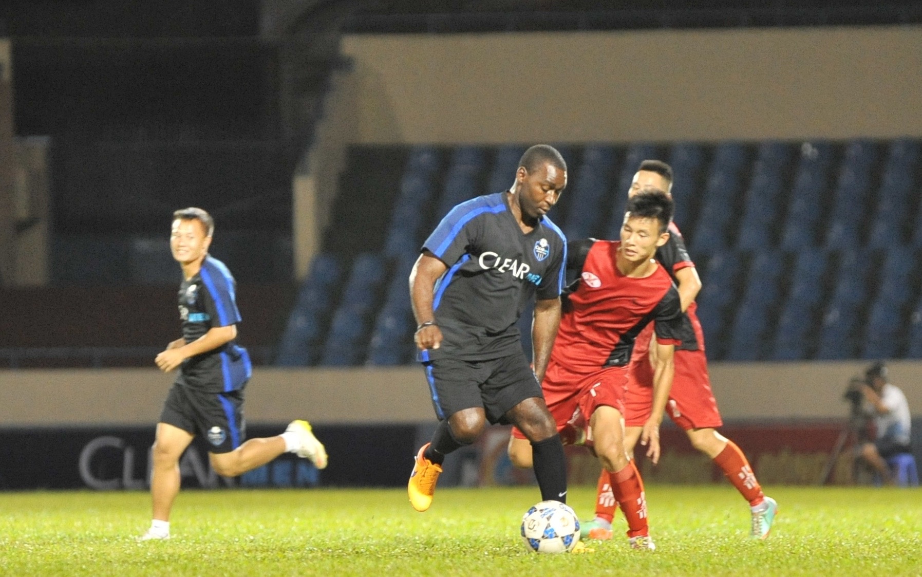 | HLV Như Thuần bố trí Anh Khoa đá chính và là trụ cột trong hiệp 1 trận đấu giữa Than Quảng Ninh - Đội bóng Andy Cole (Clear Men Team). |
