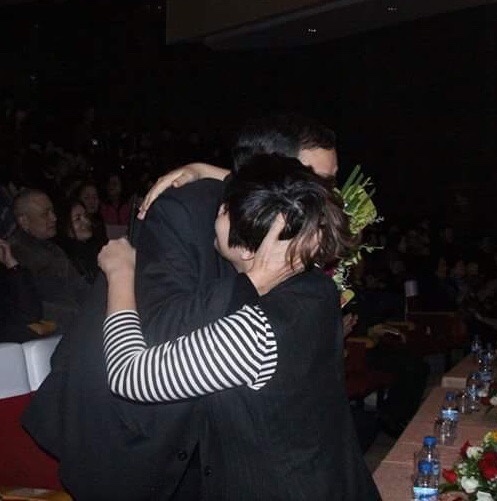 | Bông Mai chia sẻ hình ảnh ôm chặt ba An Thuyên. |