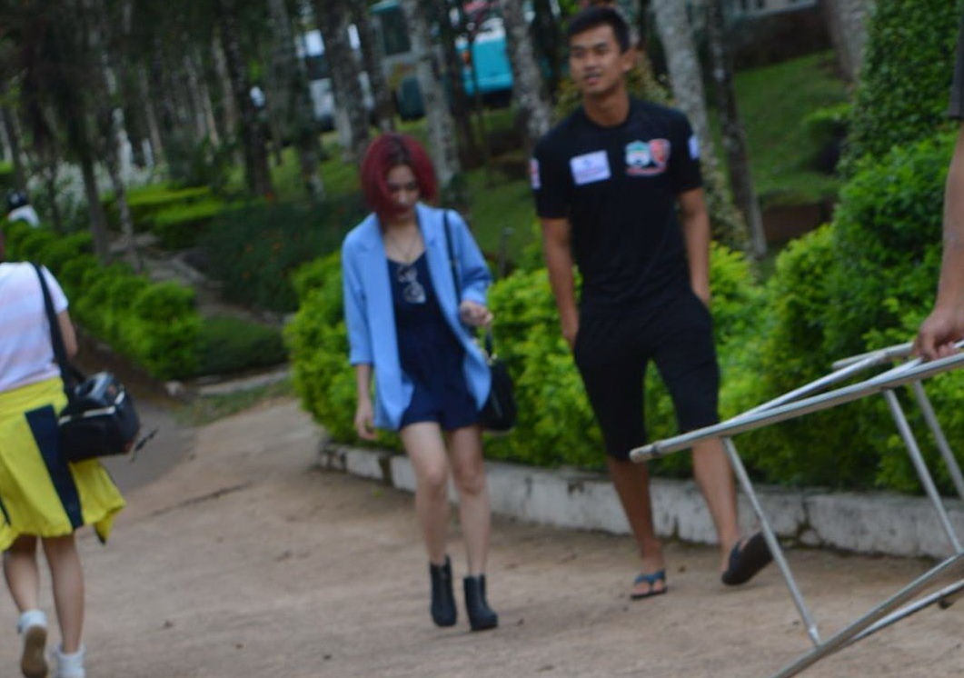 | Hoà Minzy chụp hình cùng Công Phượng khi ở cùng khách sạn trong những ngày U19 HAGL tham dự giải U21 quốc tế. |