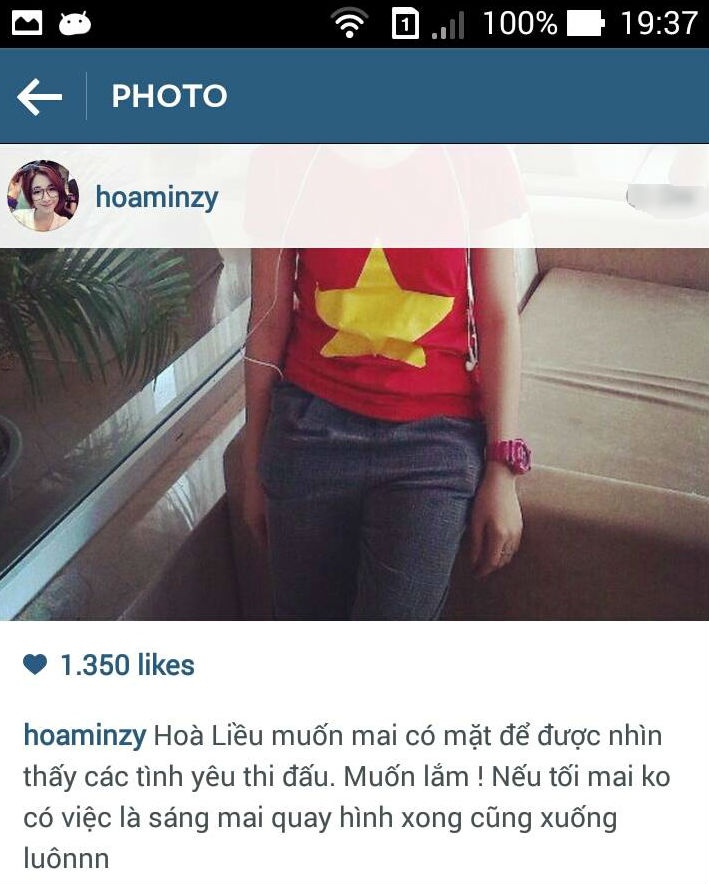 | Chia sẻ của Hoà Minzy trên trang cá nhân về khát khao được theo dõi các cầu thủ U19 thi đấu.