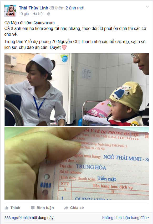 Có con trong độ tuổi tiêm phòng, như nhiều bà mẹ khác, nữ ca sĩ Thái Thùy Linh rất quan tâm tới vắc xin. Từng hoang mang và "án binh bất động" vì những thông tin trái chiều xung quanh Quinvaxem và Pentaxim, sau một thời gian dài nghiên cứu, tìm hiểu, bà mẹ 2 con của quyết định đưa con đi tiêm Quinvaxem.