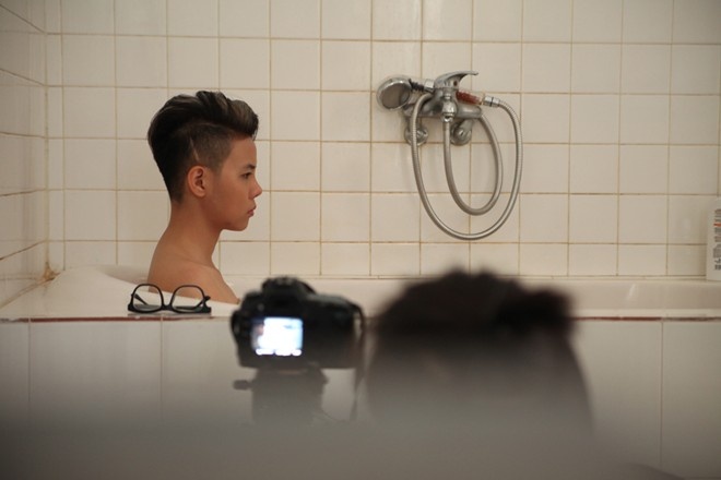 Đạo diễn là người đưa ra cảnh bán nude trong bồn tắm, tôi chỉ nghe theo. Tôi chưa bao giờ diễn xuất chứ nói gì tới đóng cảnh "nhạy cảm" như thế, nên lúc đầu có chút ngại. Tuy nhiên, vì phải tập trung thể hiện cho được cảm xúc mà đạo diễn yêu cầu trên gương mặt, trong ánh mắt, nên tôi cố gắng vượt qua sự ngượng ngùng, hoàn thành cảnh quay.