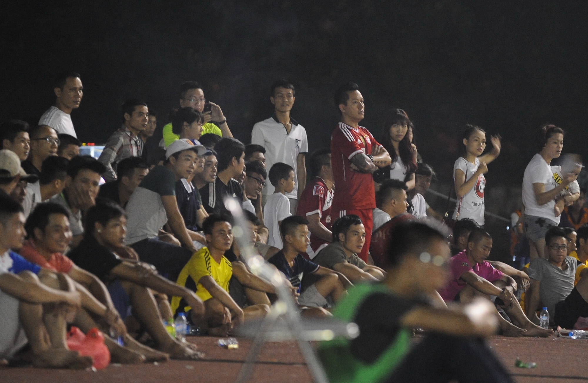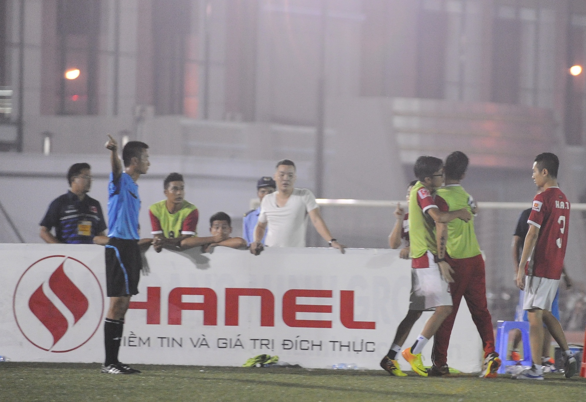 | Sau trận đấu, ca sĩ Tuấn Hưng chạy tới phản ứng gay gắt tổ trọng tài: "BTC thuê trọng tài chuyên nghiệp nhưng bắt giải phủi còn mắc lỗi và thể hiện năng lực yếu kém thì làm sao có thể thuyết phục được người hâm mộ". Nhiều CĐV tò mò vây quanh khiến tổ trọng tài phải tìm cách rút lui để tránh gây mất trật tự giải đấu. |