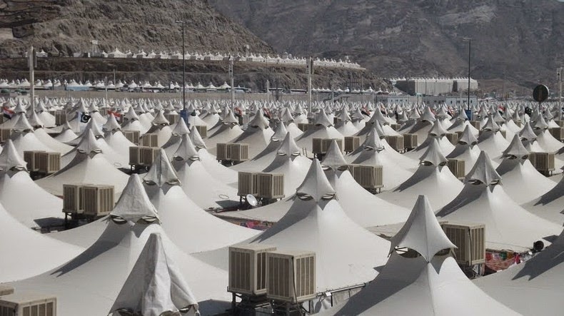 Hằng năm vào mùa hành hương Hajj, thành phố Mina của Ả Rập Saud rực lên sắc trắng của những túp lều tạm cư của người hành hương đến từ nhiều quốc gia trên thế giới.