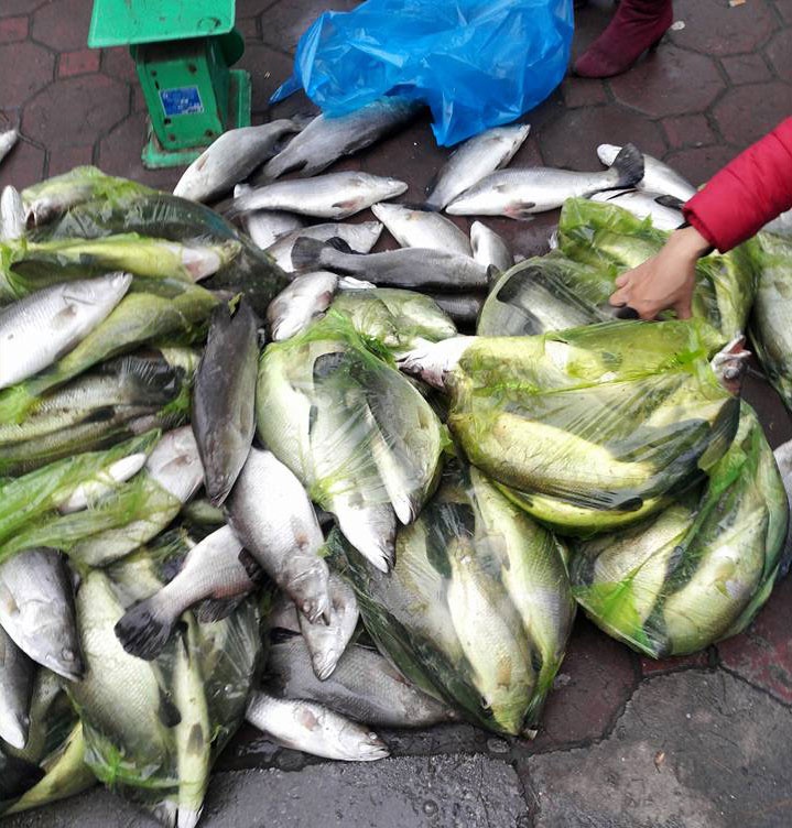 | Cá vược chết cóng bắt đầu được một số đầu mối đưa về Hà Nội tiêu thụ. Ảnh: NVCC. |