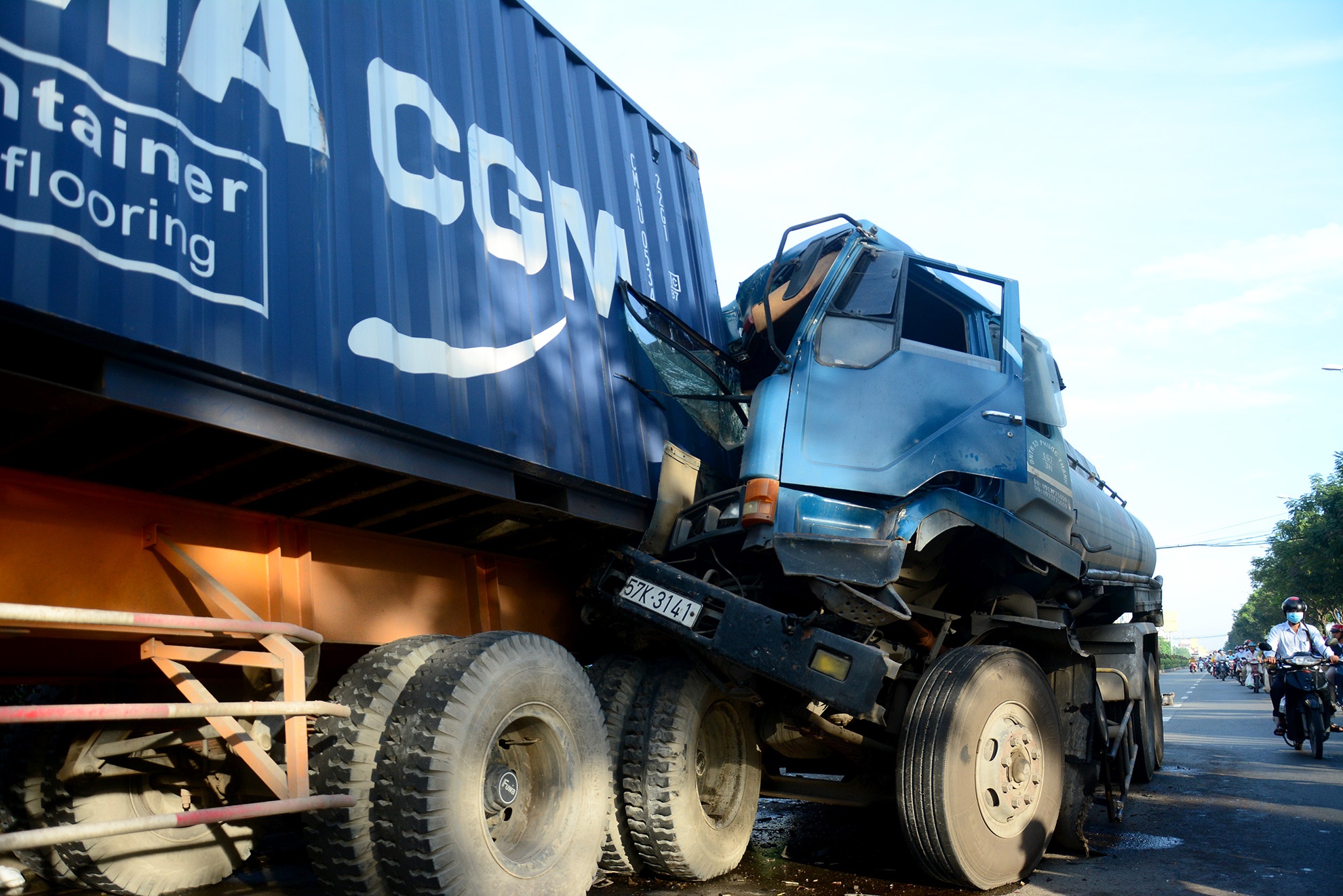 Mọi người chạy ra kiểm tra thì thấy xe bồn BKS 57K lưu thông hướng ngã tư An Sương - trung tâm TP đang cắm vào đuôi container 40 feet của ôtô đầu kéo BKS 57M đang chạy cùng chiều phía trước.