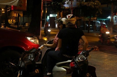 | Hai mẹ con Bùi Anh Tuấn cùng đi về trên chiếc xe máy sau khi diễn xong. |