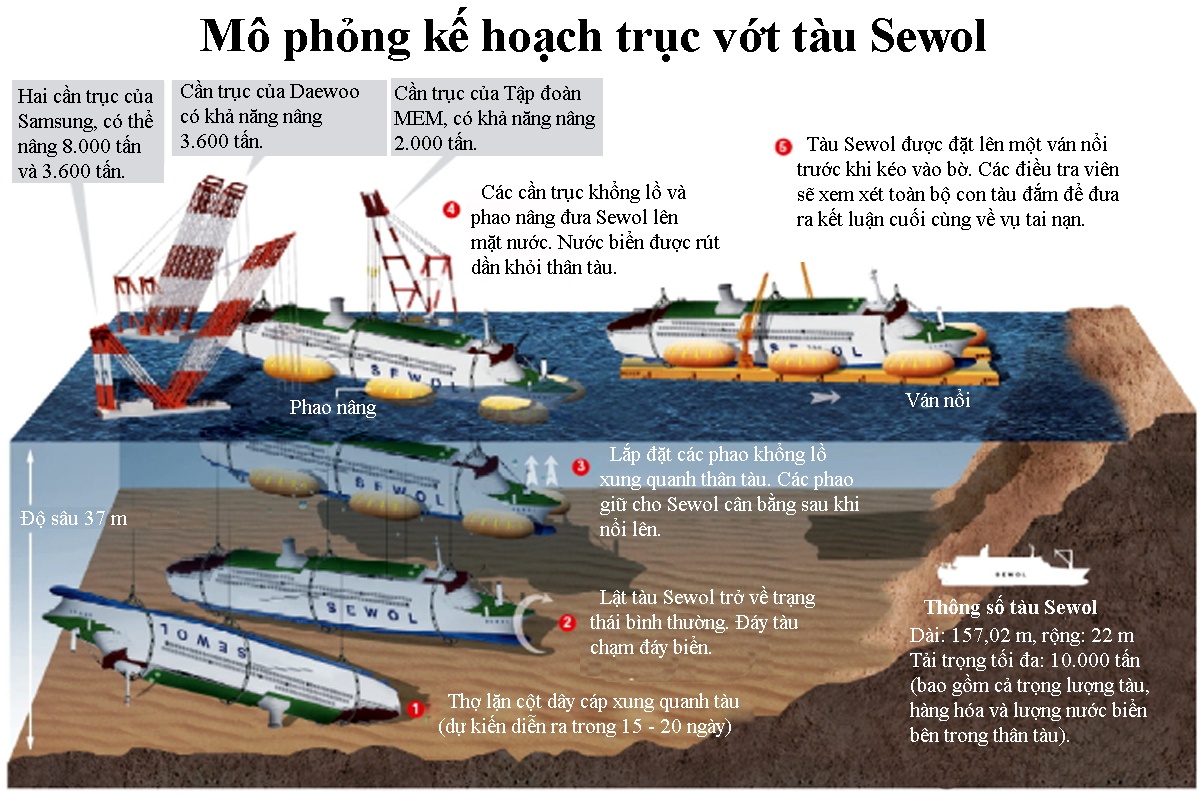 | Kế hoạch trục vớt tàu Sewol. Đồ họa: Hồng Duy |