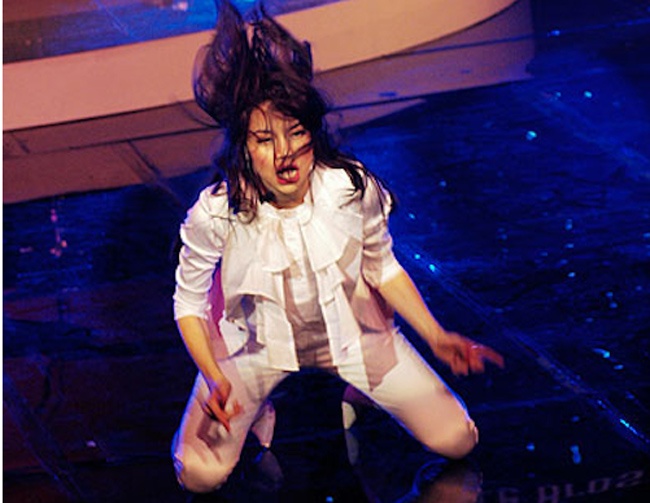 | Yến Trang và pha tạo dáng “lạ” trên sân khấu. |