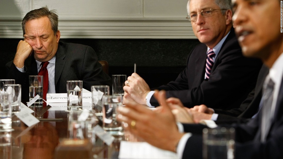 Cựu cố vấn kinh tế của Tổng thống Mỹ Obama, Larry Summers, tranh thủ chợp mắt trong cuộc họp báo vào tháng 4/2009 tại Nhà Trắng.
