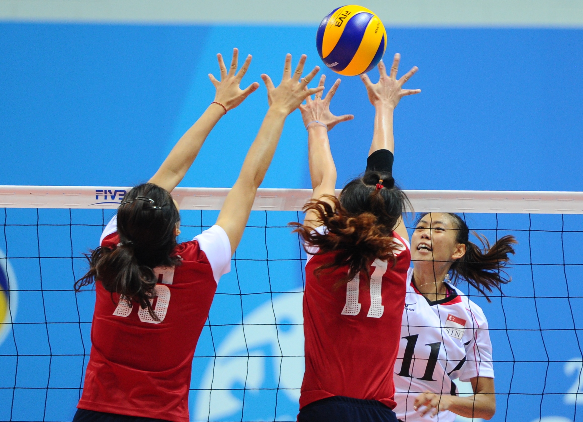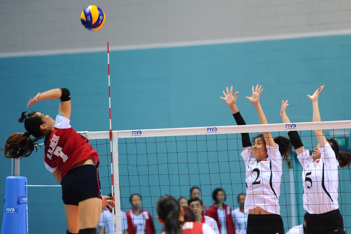 | Lối chơi của ĐT nữ Singapore đơn giản với những pha tấn công nhanh trước, nhanh sau giữa lưới và biên bốn. |