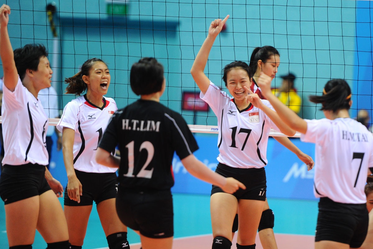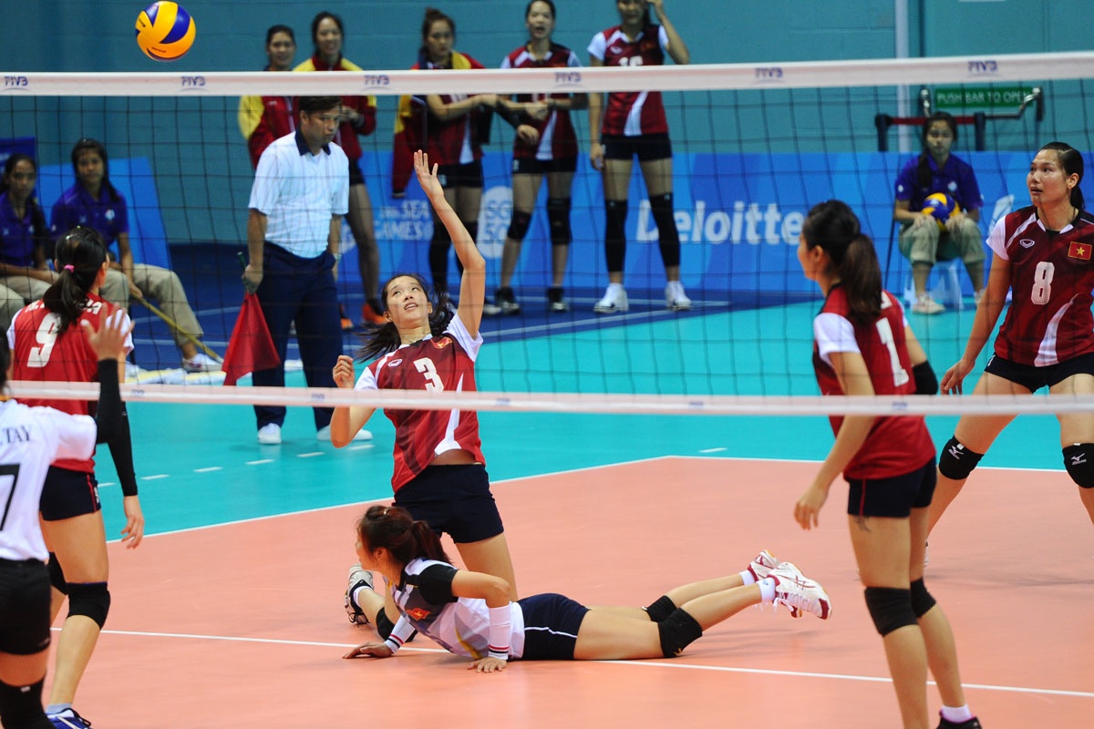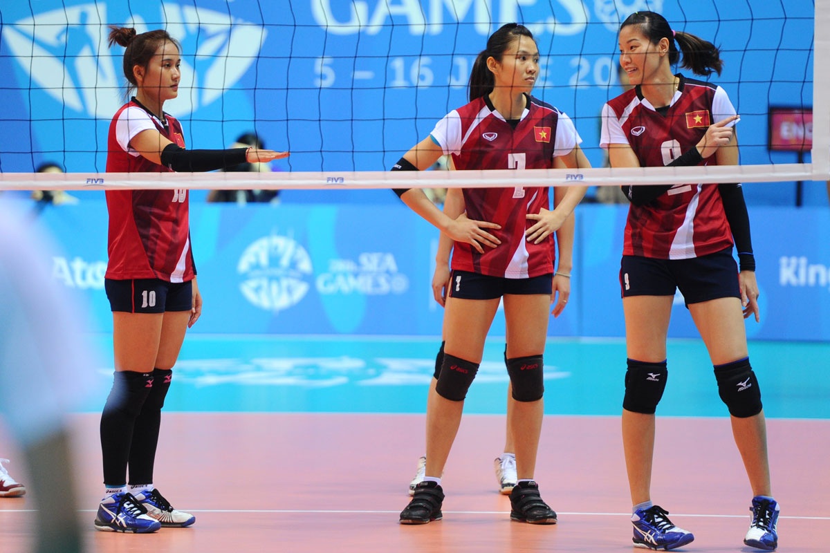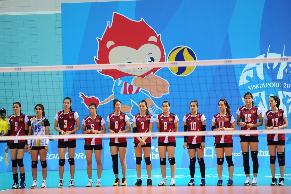 ĐT bóng chuyền nữ đánh bại chủ nhà Singapore với tỷ số 3-0 để vào chung kết gặp ĐT nữ Thái Lan ngày 15/6.