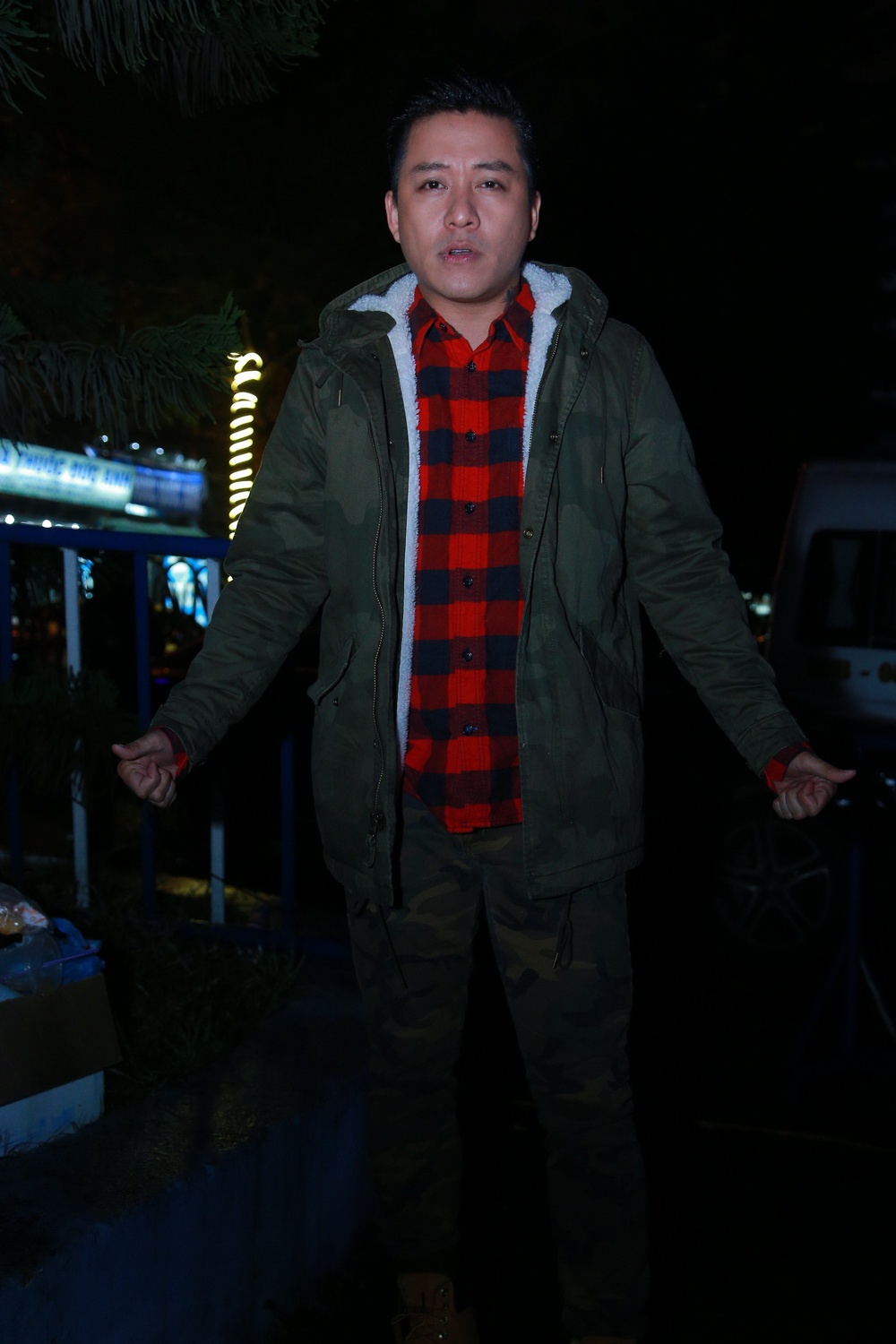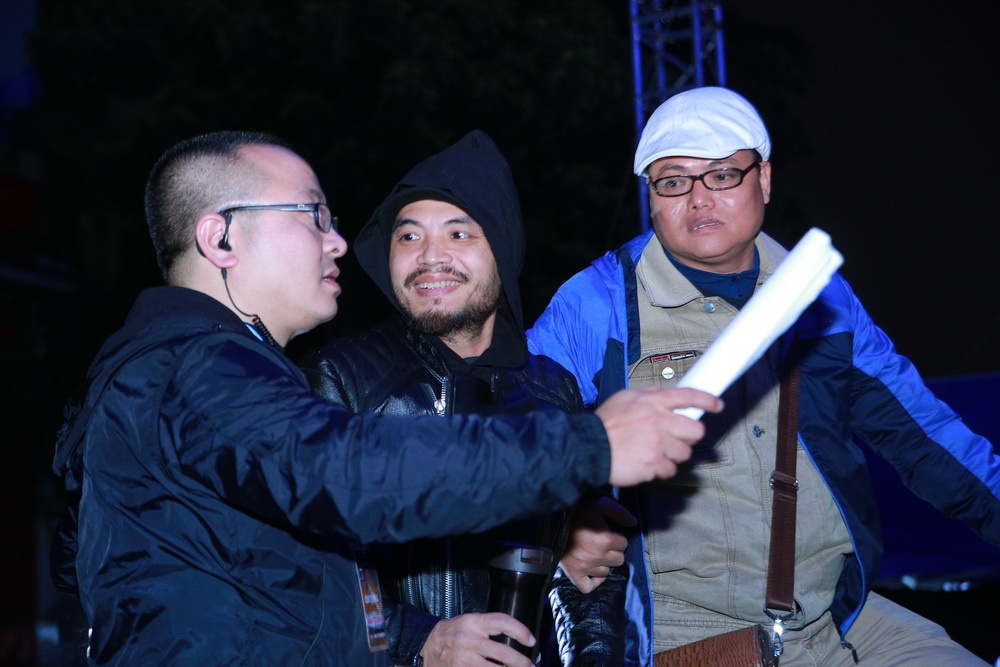 | Trần Lập xuất hiện ở phía hậu trường của đêm nhạc Đôi bàn tay thắp lửa khá lặng lẽ. Anh tranh thủ trò chuyện với ê-kíp về chương trình và phần trình diễn của mình. |