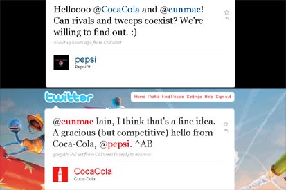 "Thỏa thuận ngừng bắn không chính thức" nhắc tới ở đầu bài chính là nói về thái độ thân thiện giữa Coke và Pepsi trên Twitter. Năm 2009, Coca-Cola và Pepsi đã cho mọi người chứng kiến một cái bắt tay thân tình, tuy nhiên đó chỉ là trên Twitter. Công ty Amnersia Razorfish đã mời Coke và Pepsi lên mạng xã hội này để cùng "thử tìm và thấu hiểu lẫn nhau".
