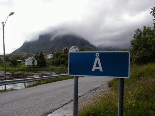 Địa danh này chỉ có tên là "Å" nằm ở cả Thụy Điển và Na Uy. Theo tiếng Scandinavia, "Å" nghĩa là sông. Hình ảnh trên là một biển hiệu báo phía trước có sông mới được đặt bên đường. Những biển hiệu này thường bị đánh cắp vì giá trị độc đáo của nó.