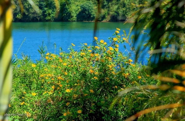 Du khách sẽ được chiêm ngưỡng những thảm hoa dã quỳ khoe sắc vàng rực rỡ, soi bóng lung linh xuống mặt nước và ngắm nhìn khoảng không gian xanh mát của 2 hàng thông ba lá cổ thụ dẫn vào Biển Hồ (còn gọi là hồ Tơ Nưng).
