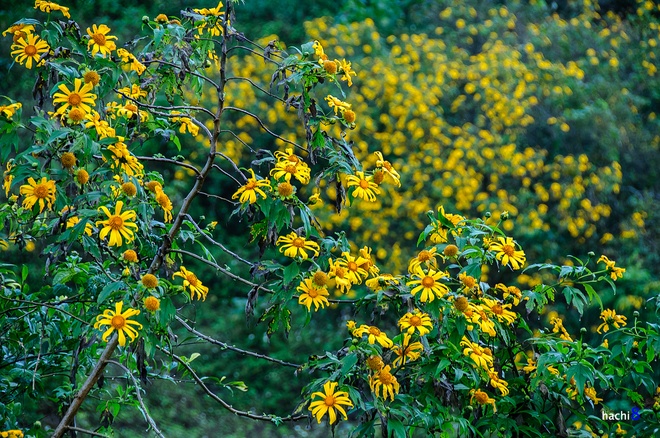 | Cao nguyên Mộc Châu cũng có mùa hoa dã quỳ vàng rực. Ảnh: hachi8. |