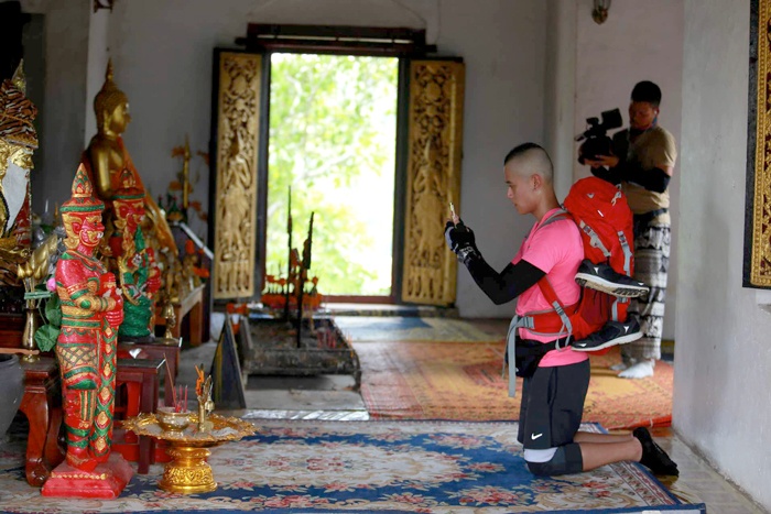 | Trong khi đó, đội Hồng của Thùy Anh và Đăng Hoàng lại khá thoải mái khi biết sẽ tới quốc gia láng giềng: "Sau những lần về cuối ở các chặng trước thì đọc mật thư chặng tiếp theo sẽ đến Lào, cả Hoàng và Thuỳ Anh đều thấy vui và hứng thú. Thế mạnh của đội Hồng là ngoại ngữ và giao tiếp nên đây là cơ hội để đội bứt phá. Các thử thách ở Lào cũng rất đặc trưng, mình được trải nghiệm nhiều văn hoá và làng nghề truyền thống nên đây là một chặng đua đáng nhớ với Hồng”. |