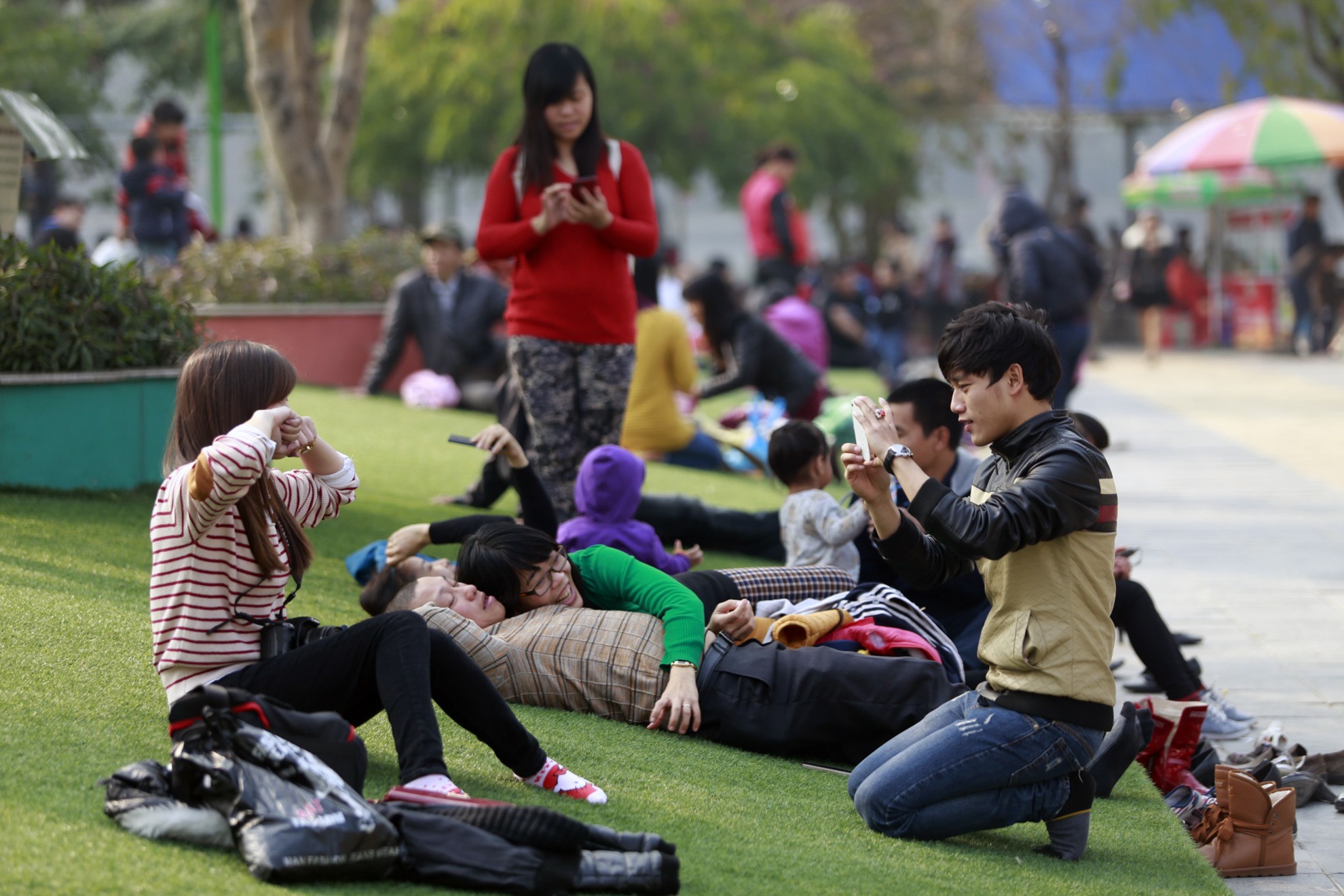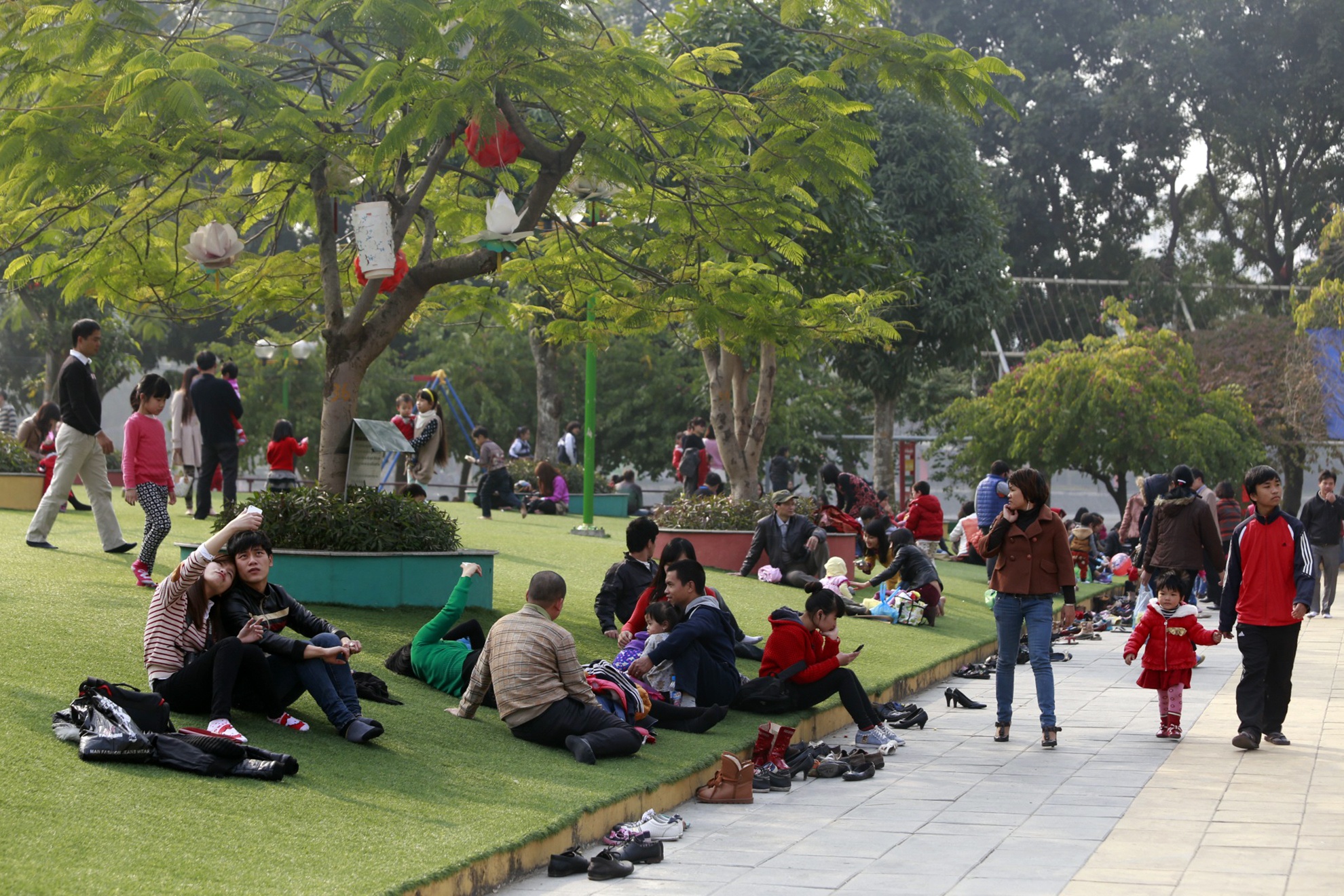 | Trưa ngày 1/1, tại công viên Nghĩa Đô nhiều gia đình và sinh viên đến đây để nghỉ ngơi nhân dịp nghỉ tết Dương lịch. |