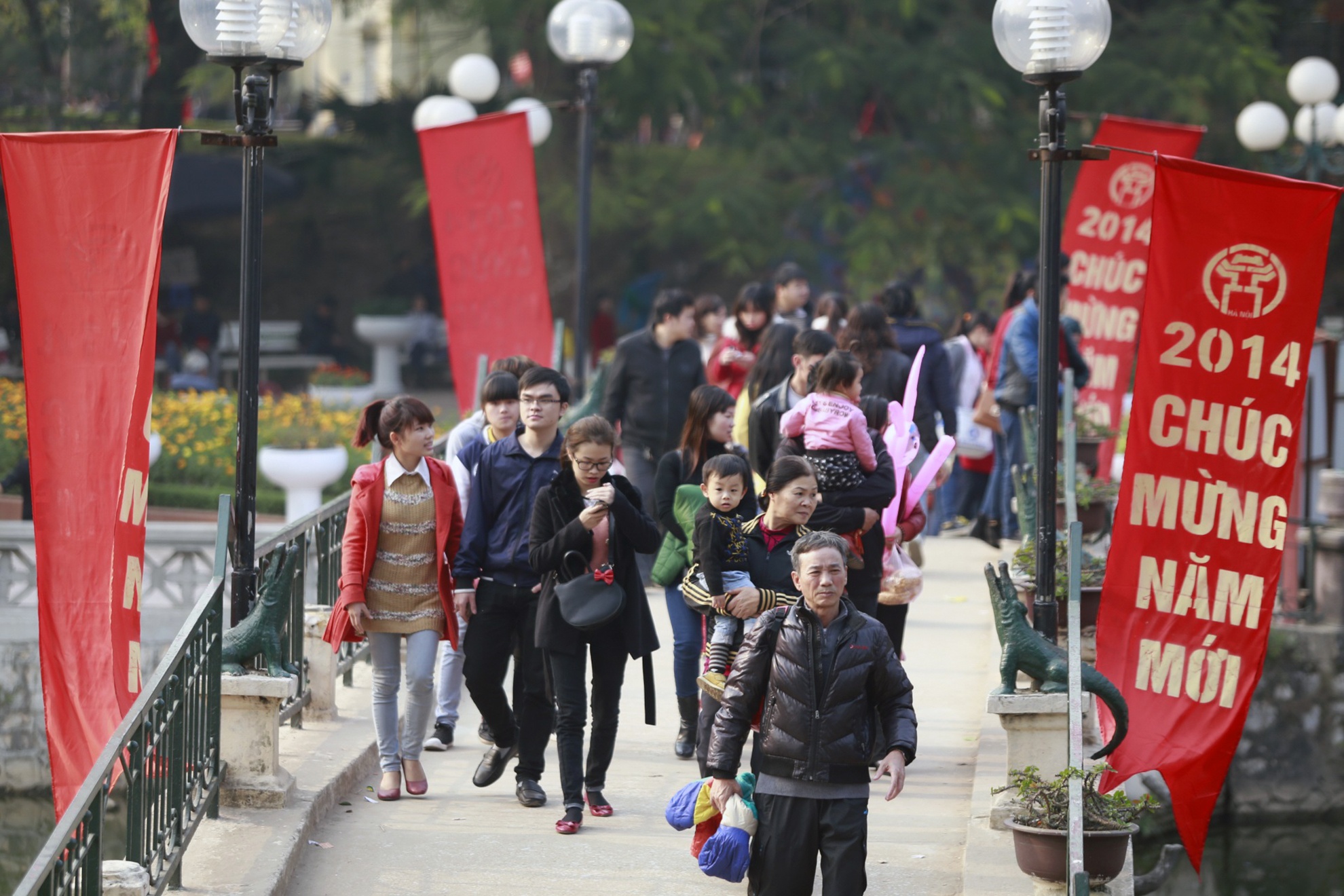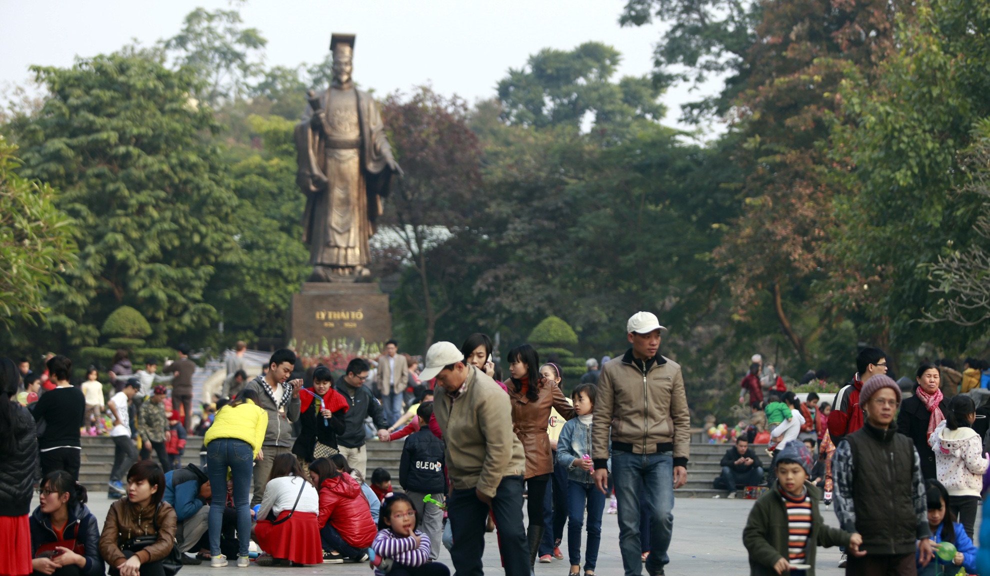 | Khu vực tượng đài Lý Thái Tổ đông nghịt người. |