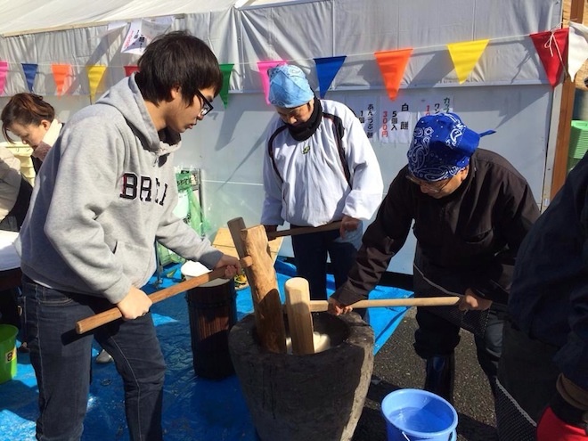 | Các ban trẻ Việt sinh sống tại Hàn Quốc hay Nhật Bản còn tham gia giã gạo làm bánh đầu năm. |