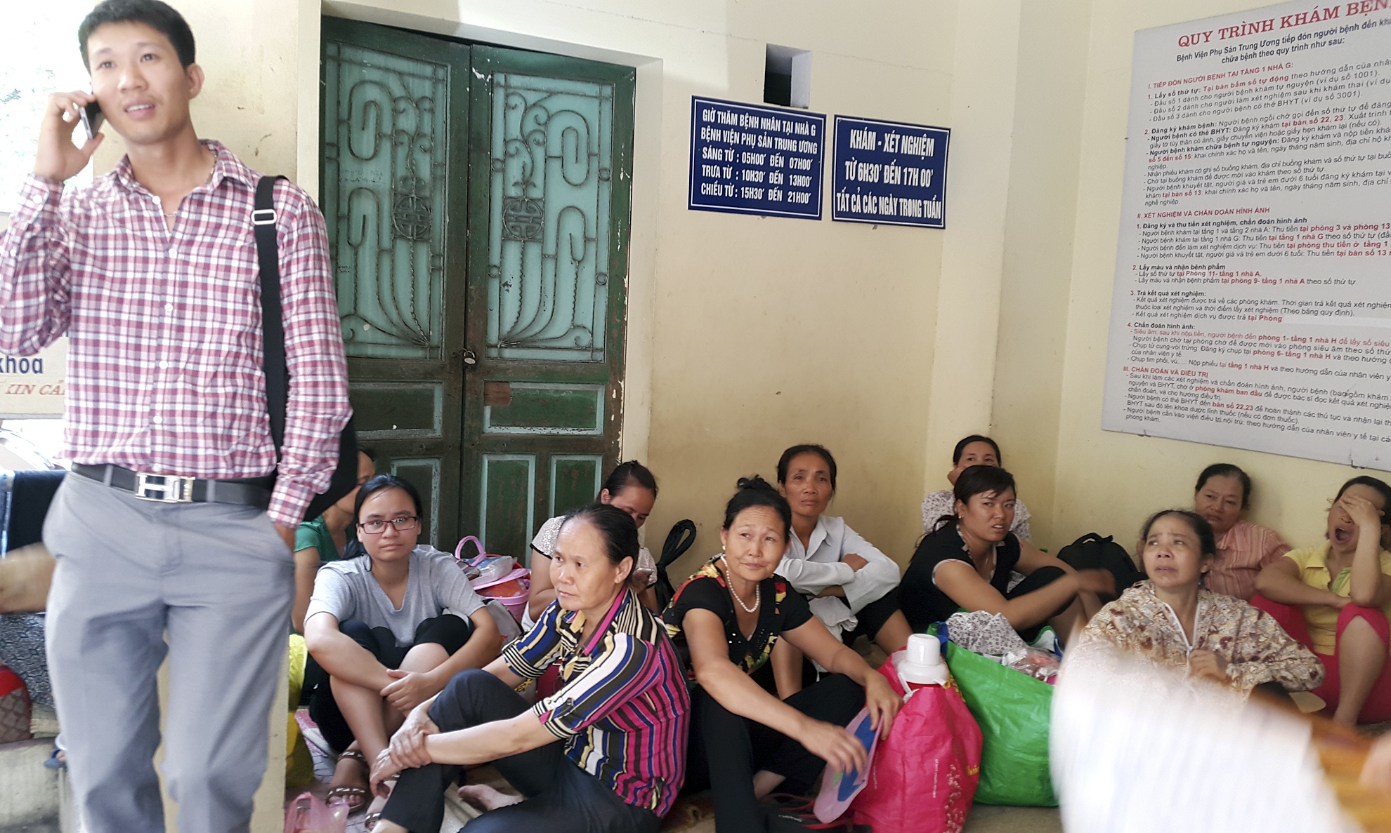| Tại Bệnh viện Phụ sản TW, người nhà bệnh nhân cũng rất đông. |