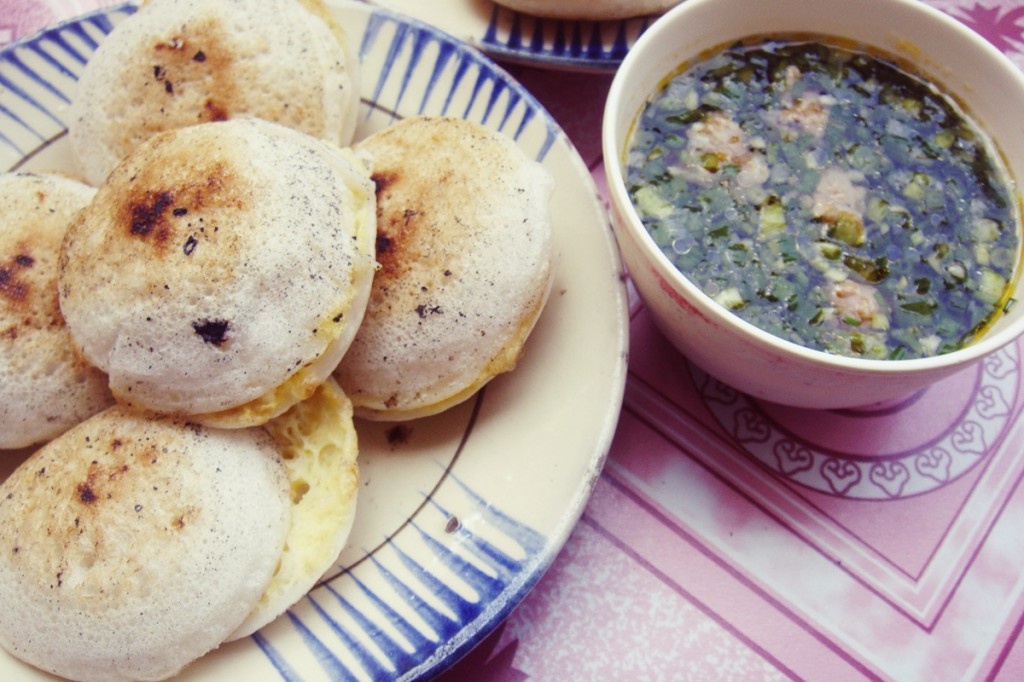 Buổi tối đến Đà Lạt, bạn sẽ được xem đổ bánh căn trong khuôn nóng, dọn cùng chén nước chấm có xíu mại. Mỗi miếng bánh đều thấm nước chấm nồng vị ớt, béo ngậy mùi hành phi. Một cặp bánh có giá dao động từ 3.000-5.000 đồng tuỳ thuộc vào nhân bánh. |