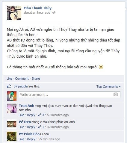 | Fanpage của Mâu Thanh Thủy nhanh chóng cập nhật tình hình của người đẹp. |