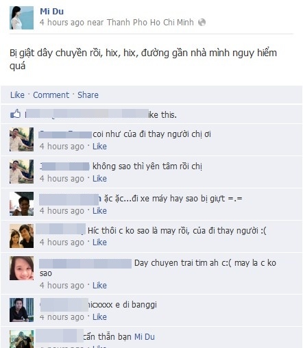 | Hương Tràm than thở về chuyện hai lần bị giật điện thoại trên trang cá nhân. |
