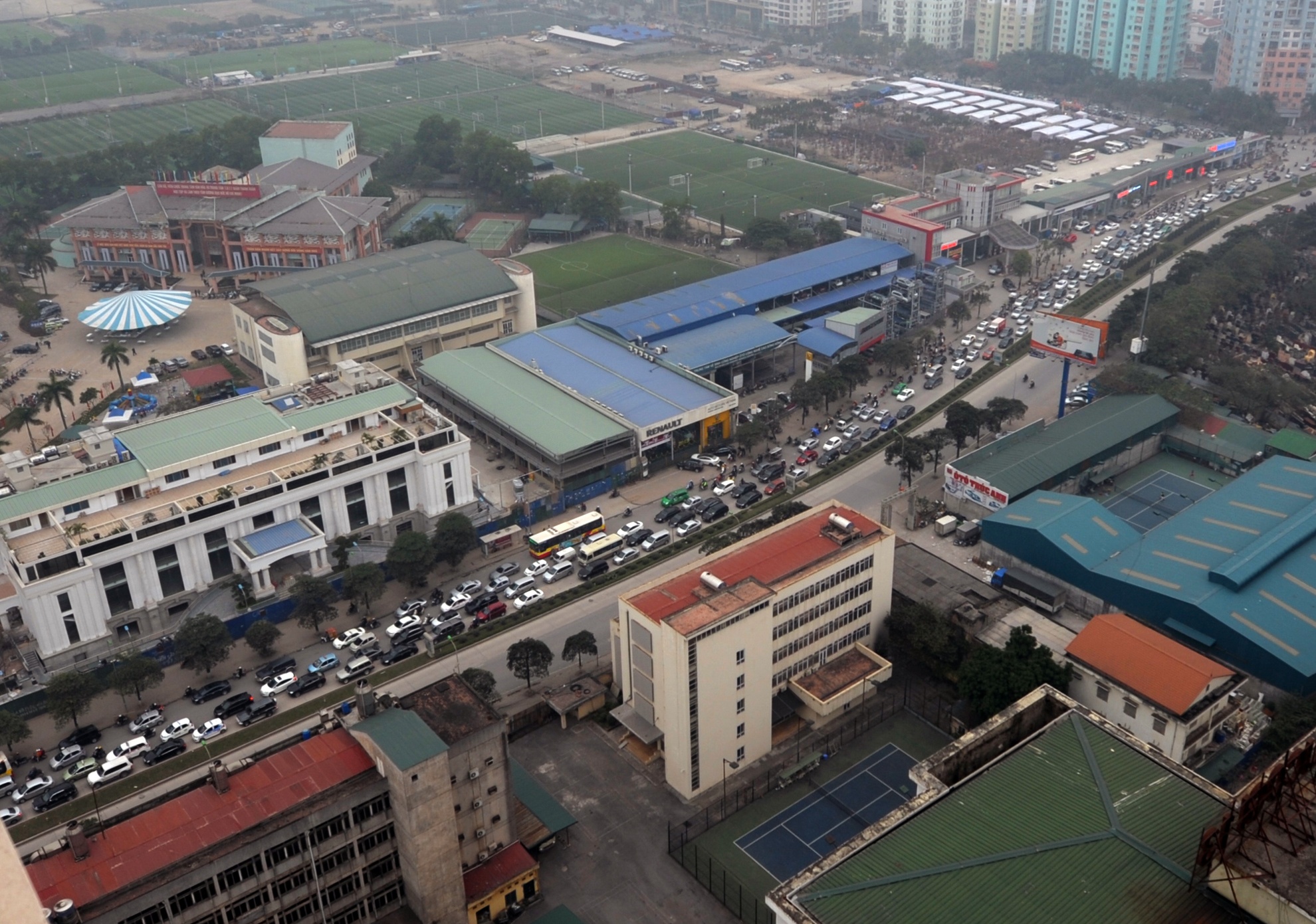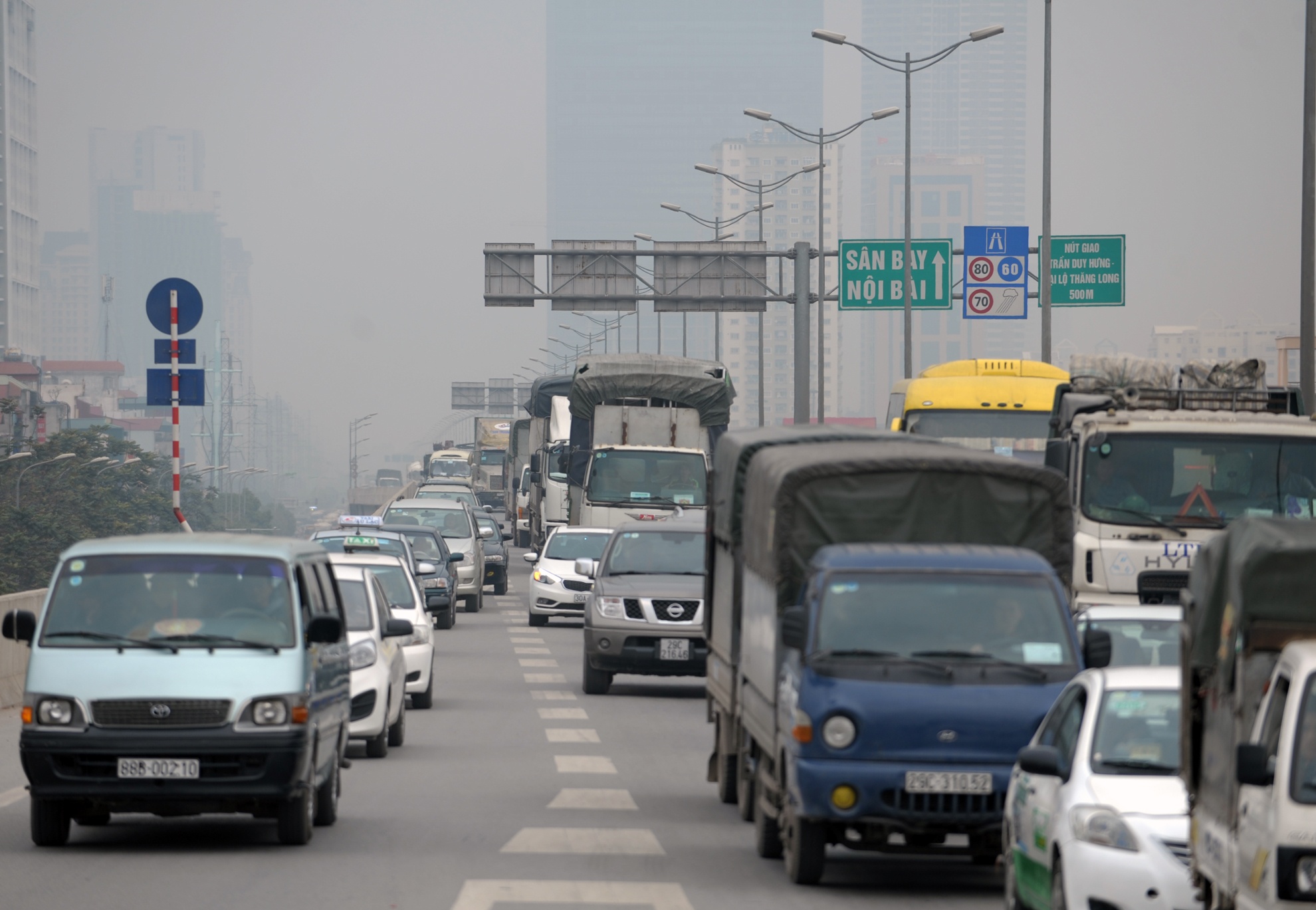 | Tại đại lộ Thăng Long các buổi chiều tuần từ 15 đến 24/12 âm lịch luôn rơi vào cảnh kẹt cứng, ôtô bóp còi inh ỏi. Ảnh: Hoàng Anh. |