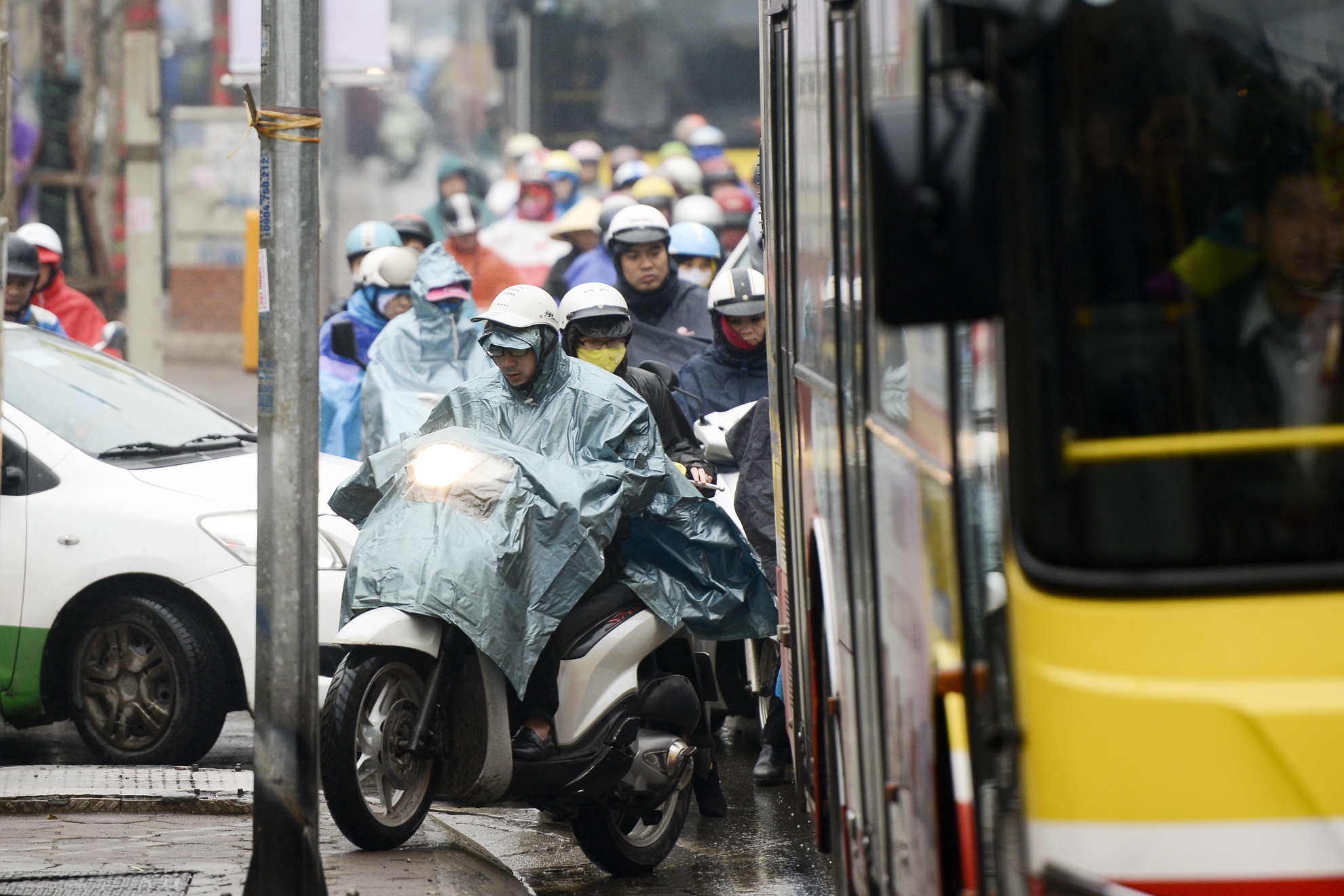 | Nhiều người phảileo lên vỉa hè để di chuyển. Mới đây Sở GTVT Hà Nội, phòng CSGT đã tổ chức kế hoạch, triển khai các lực lượng đứng chốt tại các điểm nóng nhưng tình trạng vẫn chưa tiến triển. |