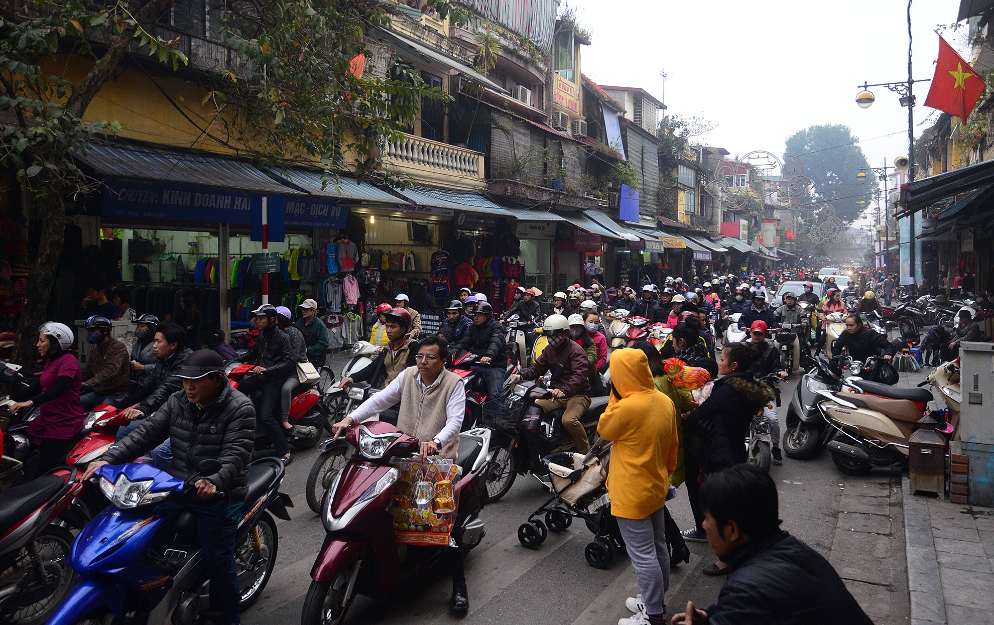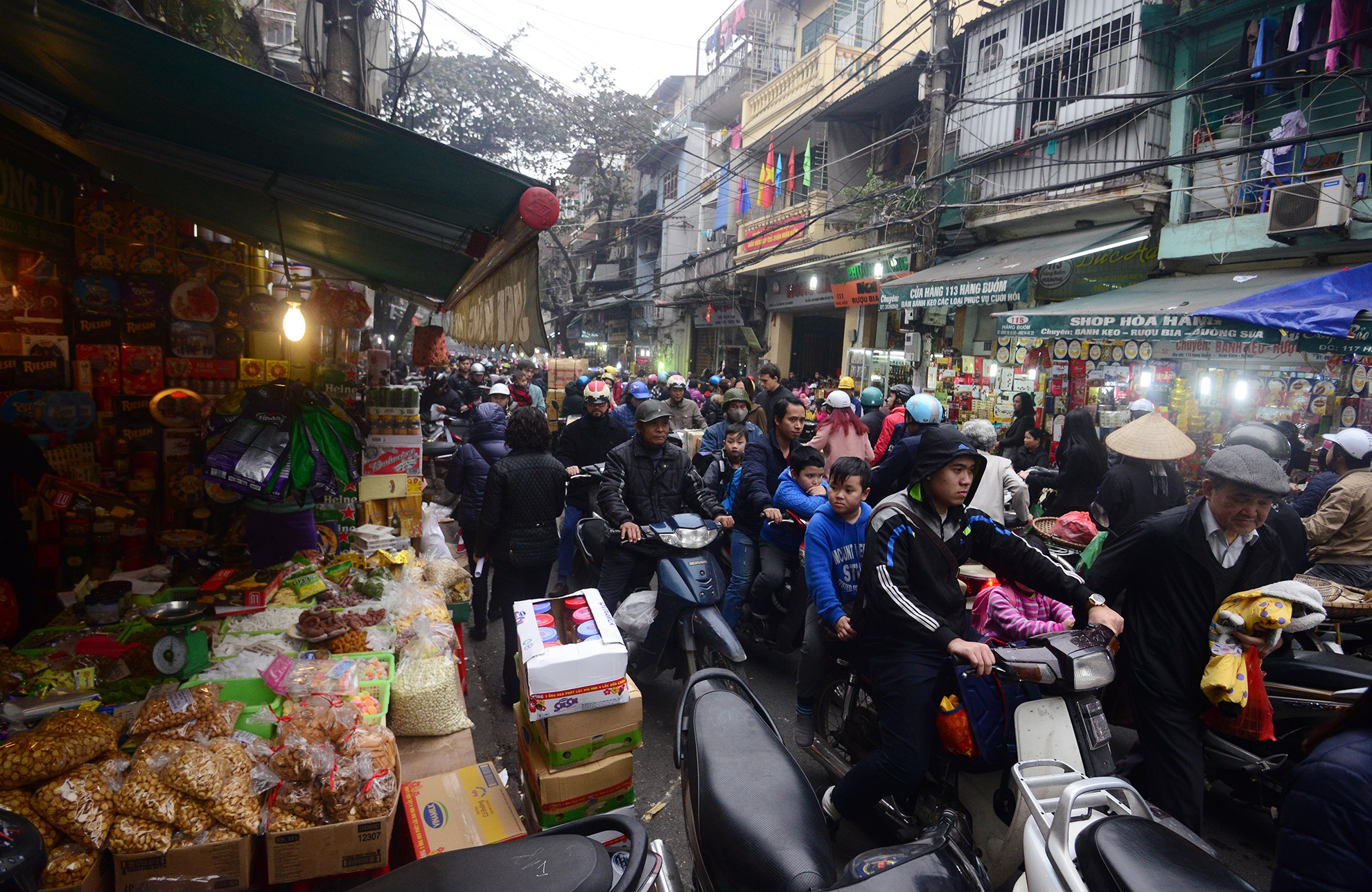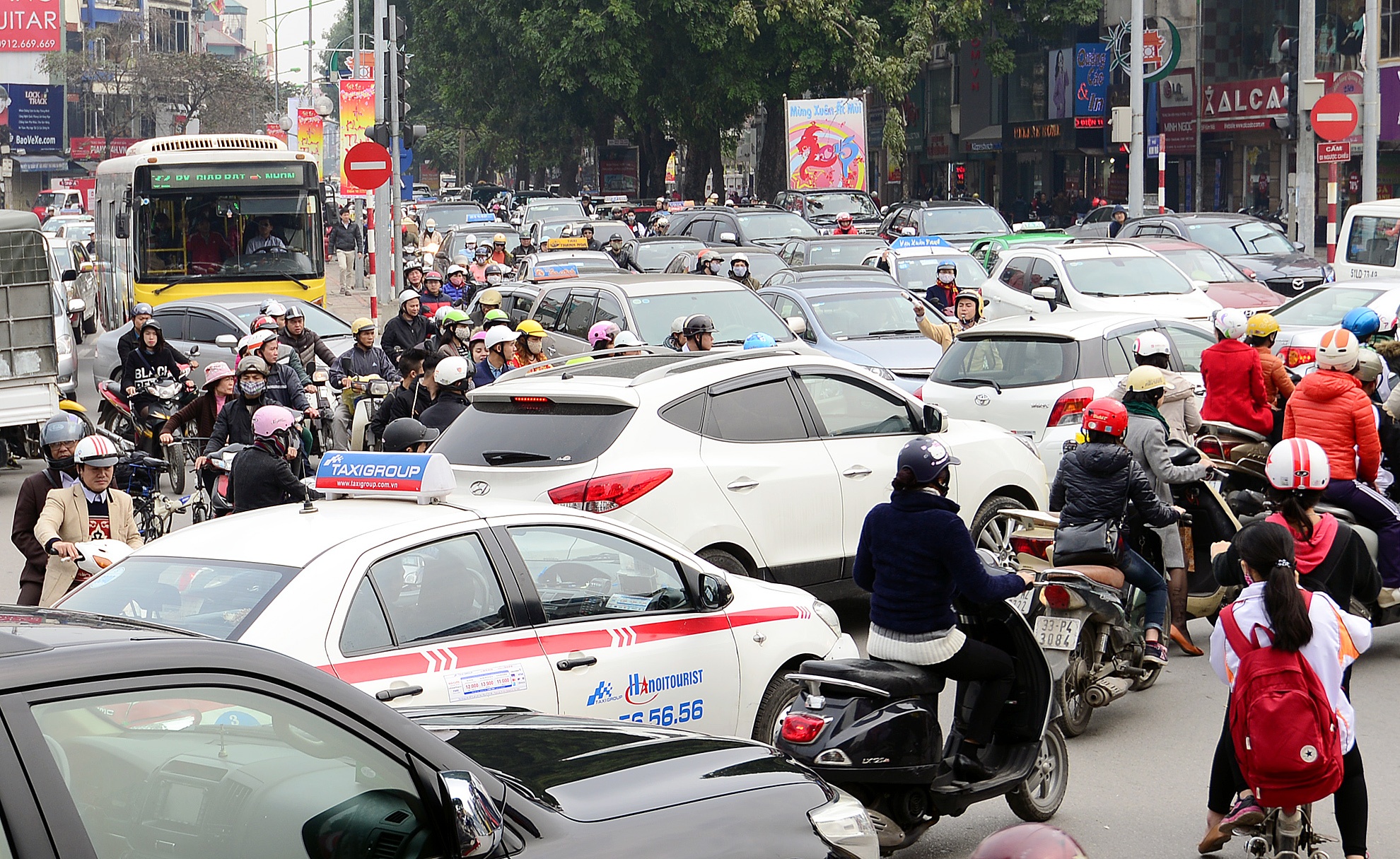 Những ngày giáp Tết, ra đường là một sự khốn khổ đối với nhiều người dân Hà Nội. Hầu hết các tuyến đường to, nhỏ đều lâm vào cảnh ùn ứ, bất kể thời gian nào. Ảnh: Hoàng Anh.