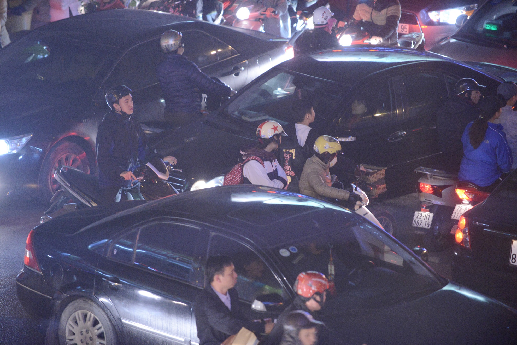 Phố Huế các buổi tối thời gian gần đây cũng trong tình trạng tương tự. Đoạn đường ách tắc nhất từ nút giao Bạch Mai - Đại Cồ Việt tới Trần Xuân Soạn.