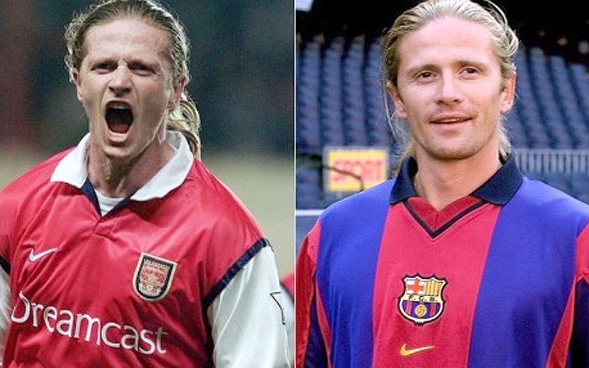Emmanuel Petit (Arsenal 1997-00; Barca 2000-01): Hợp với Patrick Vieira tạo thành cặp tiền vệ trung tâm xuất sắc của Arsenal trong những năm cuối thế kỷ 20. Hai năm sau khi giành cú đúp 1998, Petit tạo bước lùi của sự nghiệp khi chuyển đến Barcelona. Ông thi đấu đúng 1 mùa rồi lại về nước Anh đá cho Chelsea. |