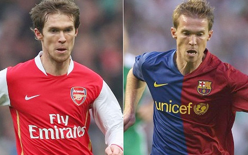 Giovanni van Bronckhorst (Arsenal 2001-04; Barca 2004-07): Van Bronckhorst dính chấn thương đầu gối dai dẳng nên 3 năm gắn bó với Arsenal anh không để lại nhiều dấu ấn. Về Barcelona, danh thủ người Hà Lan có vị trí thường xuyên, giành 2 La Liga cùng 1 Champions League. |