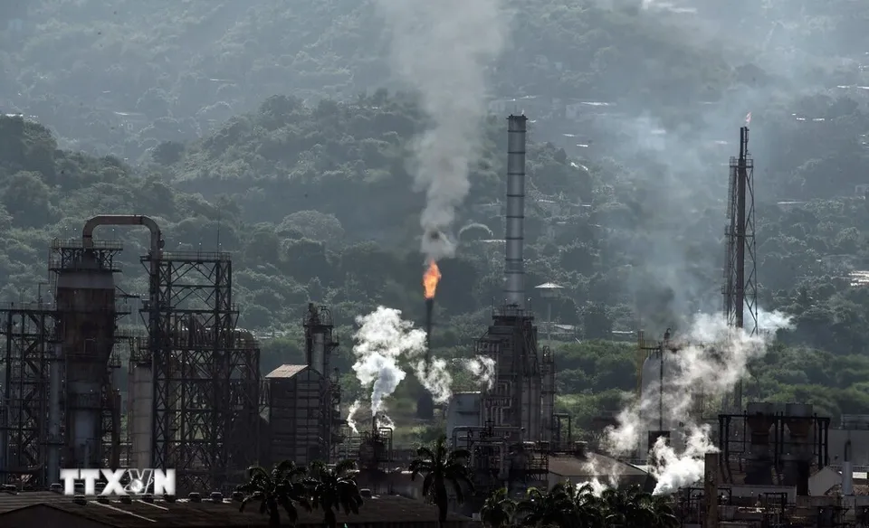 Một nhà máy lọc dầu của Tập đoàn Dầu khí Quốc gia Venezuela ở Puerto La Cruz, bang Anzoategui, Venezuela. Ảnh: France24/TTXVN. |
