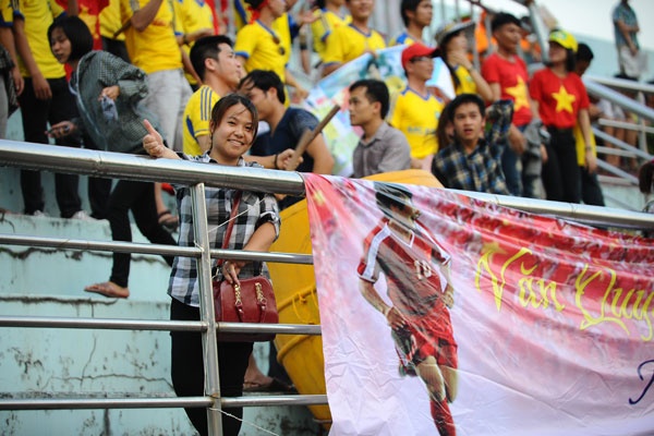 Nguyễn Thục Anh, một thành viên cốt cán trong nhóm cổ động viên xứ Nghệ cho biết nhóm của chị có khoảng 50 người, một phần di chuyển từ Nghệ An ra và một phần từ Hà Nội vào để cổ vũ Văn Quyến.
