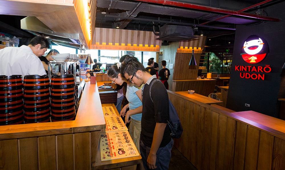 Mì Udon là loại mì có sợi dày và to nhất trong các loại mì của Nhật, cỡ mỗi sợi mì bằng một chiếc đũa ăn cơm. Chúng được ví như phở của người Việt. Tại Kintaro Udon, bạn có thể trải nghiệm cảm giác một người Nhật ăn mì Udon như thế nào. Bạn sẽ được tự mình chọn loại mì yêu thích, tự chọn các loại tempura và đồ ăn kèm, nhìn thấy các đầu bếp trực tiếp chế biến đồ ăn ngay trước mặt.