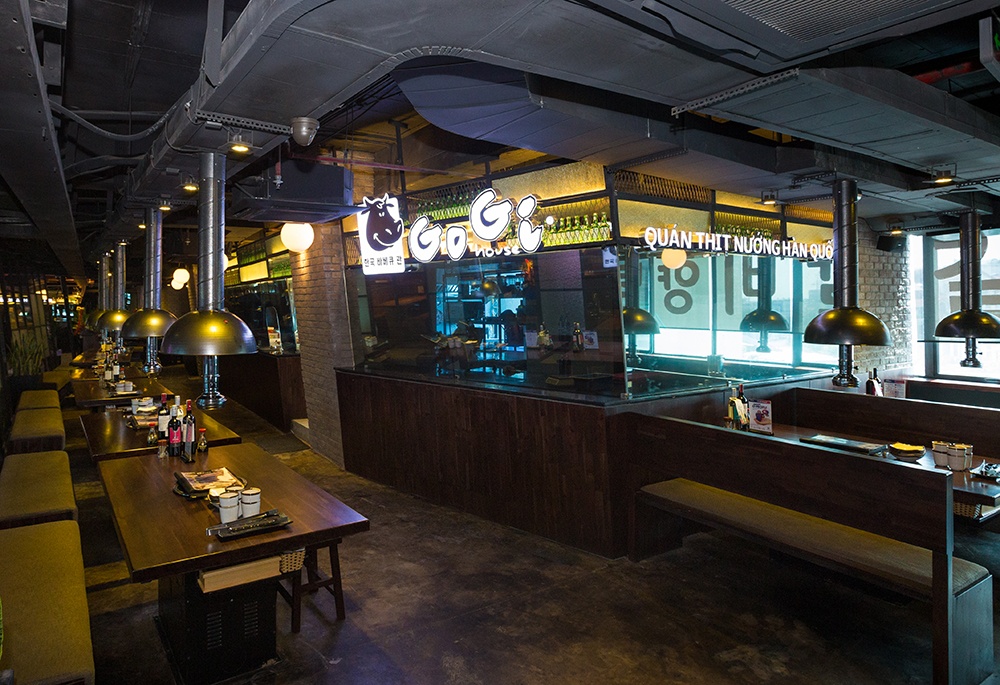Bạn có thể trải nghiệm phong cách thịt nướng Hàn Quốc tại GoGi House trong Hanoi Creative City. Không gian GoGi House tại thành phố sáng tạo với những dãy bàn dài tạo thành một phố thịt nướng ấn tượng.