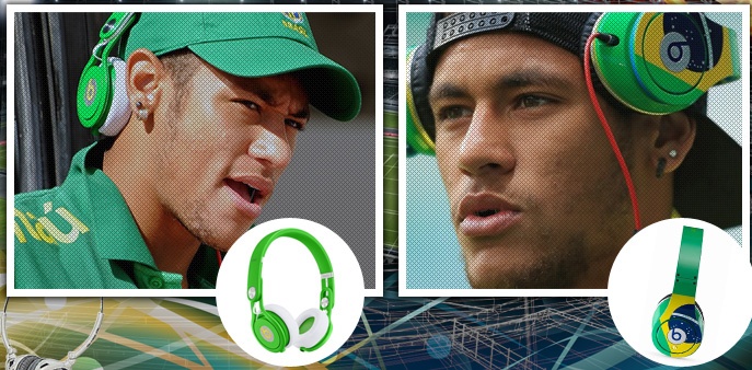 | Neymar được biết đến là một fan cuồng của tai nghe Beats. Bên trái là hình ảnh siêu sao người Brazil dùng một chiếc Beats Mixr, trong khi ảnh bên phải là một chiếc Beats phiên bản số lượng hạn chế dành cho đội tuyển Brazil. Tại World Cup 2014 vừa qua, người ta cũng bắt gặp những ngôi sao khác của Brazil như Marcelo hay Oscar đeo cùng một loại tai nghe này. |