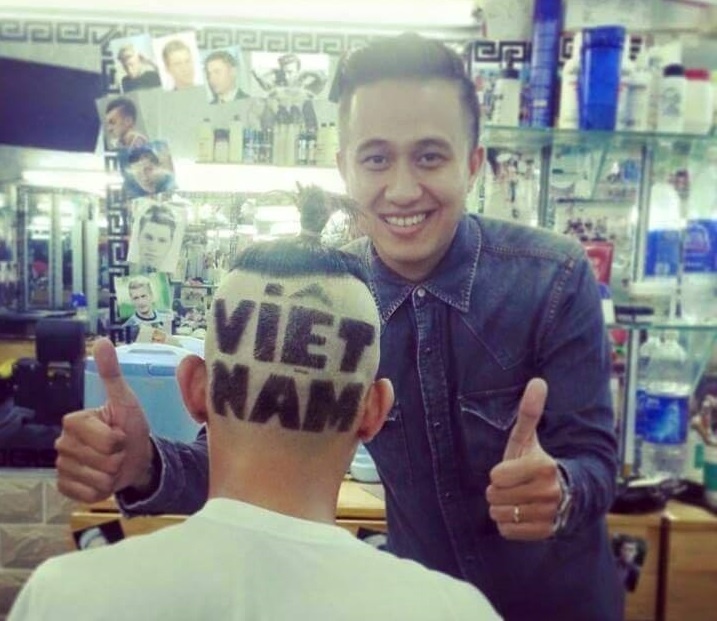 | Mùa World Cup 2014, Thanh Liêm được mọi người biết đến nhiều hơn khi sáng tạo các kiểu tóc cổ vũ bóng đá. Đây là bước ngoặc lớn trong sự nghiệp "cầm kéo" của 8X. Theo đó, anh nảy sinh ý tưởng tìm 4 mẫu nhí, khắc hình logo đội bóng. Anh bắt đầu từ chủ nhà Brazil và khá bất ngờ khi chia sẻ lên trang cá nhân được mọi người quan tâm, báo chí nước ngoài đưa tin. Ảnh: Phan Trai Úc. |