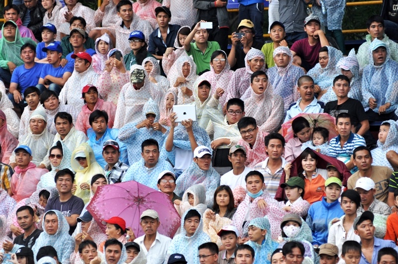 | Trời đổ mưa rất to ở ngày thi đấu hôm qua. |