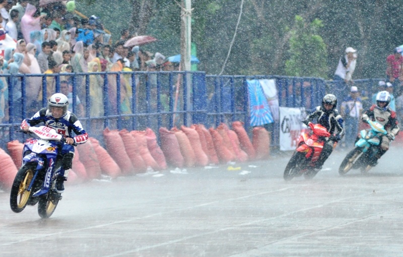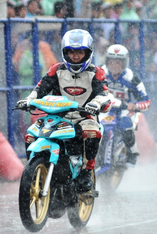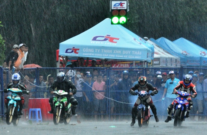 | Những cú rồ ga tăng tốc, vượt mặt diễn ra ở từng vòng đua bất chấp thời tiết xấu. |